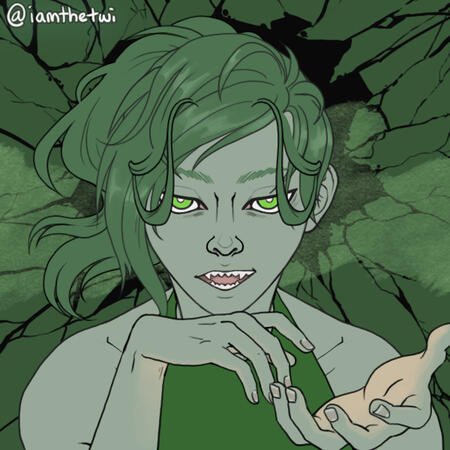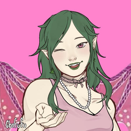 Un'elfa del Bosco Bianco trasferitasi ad Aarun per lavorare sui traghetti, per errore si è fatta ingannare da Dokko ed ha firmato un contratto dell'anima con lui, simile alla dinamica di Hazbin Hotel per intenderci. Tuttora ha ventitrè anni, ma ha iniziato a lavorare per Dokko quando ne aveva sedici.